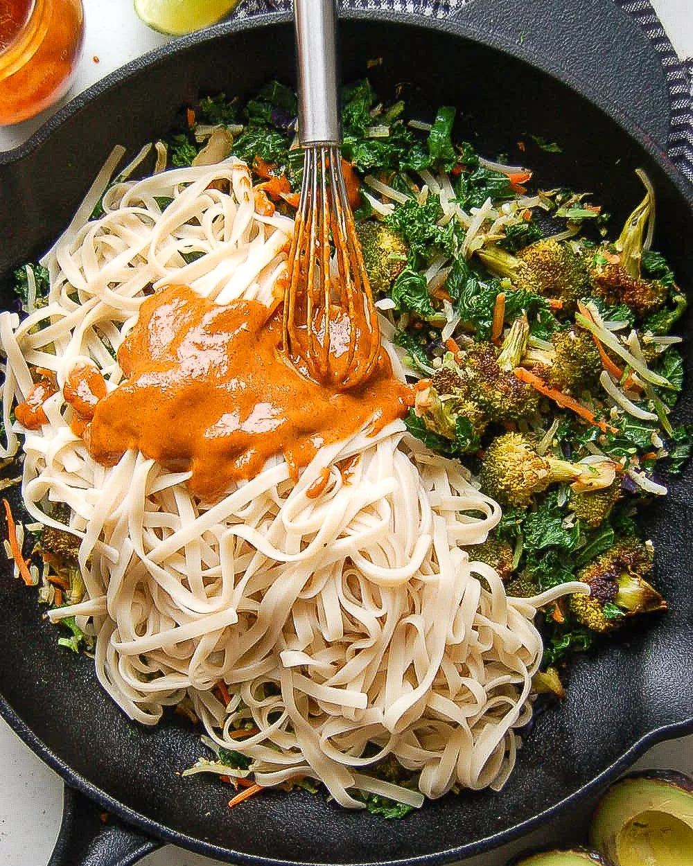 Vegan Red Curry Almond Butter Noodles + Veggies